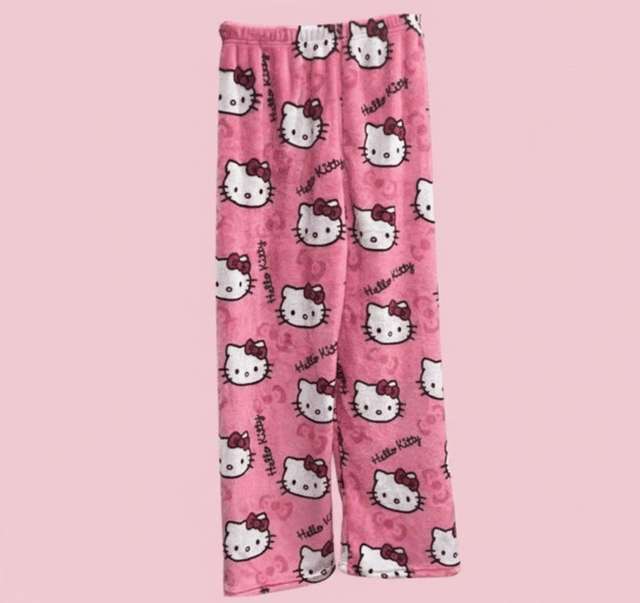 Experience warmth and comfort with this cozy flannel pajama set, adorned with playful Hello Kitty designs that make bedtime fun and stylish.